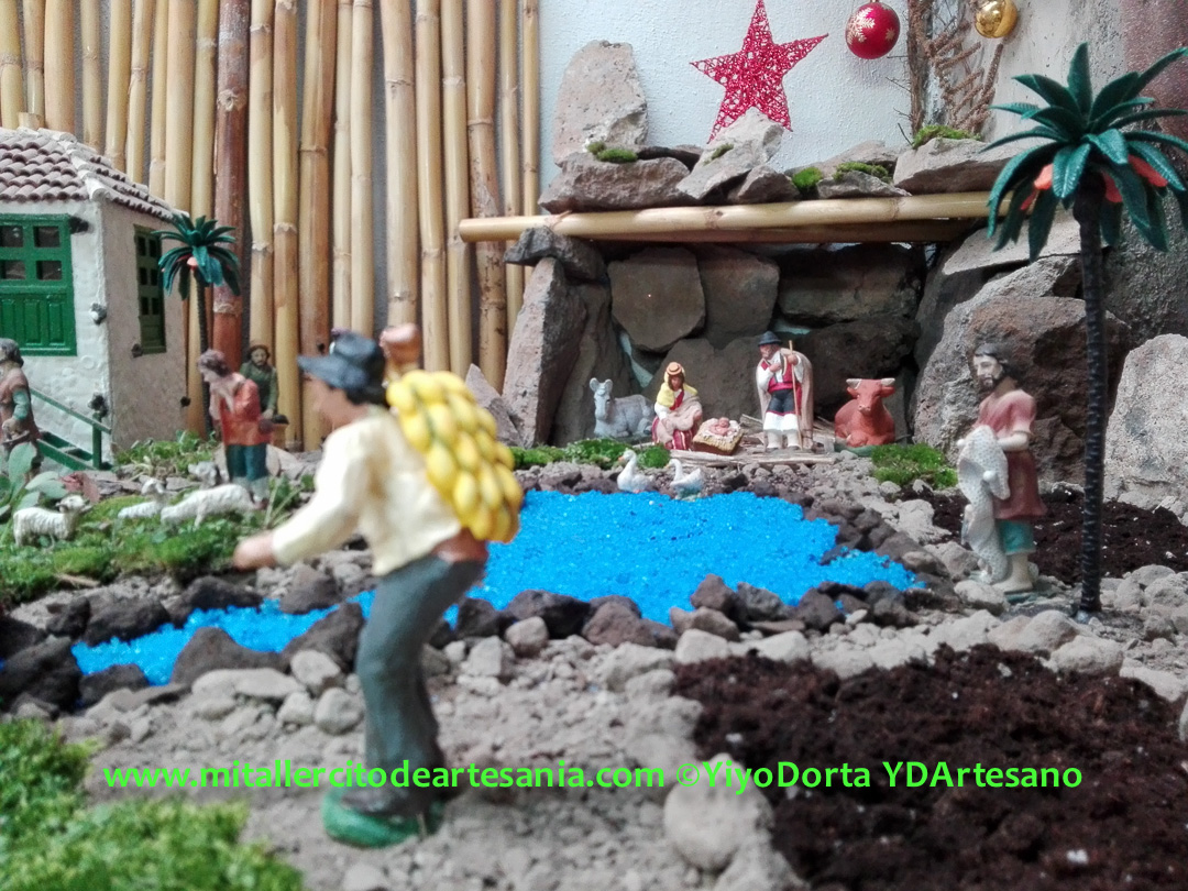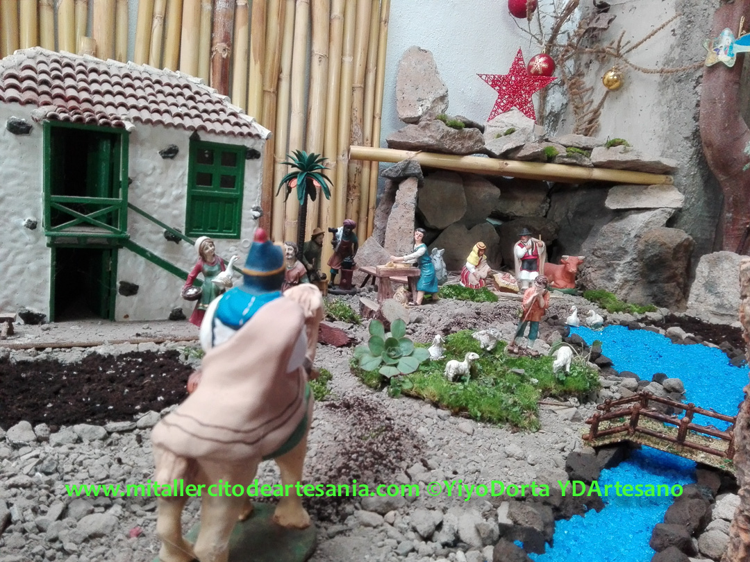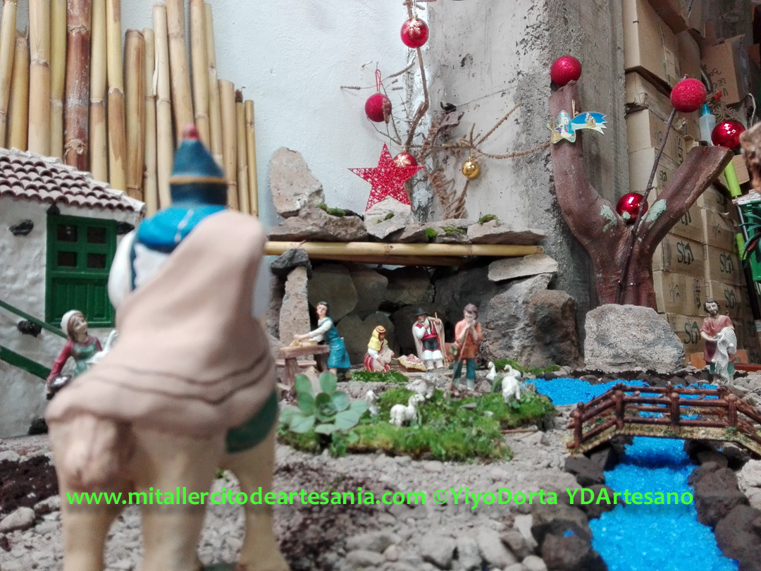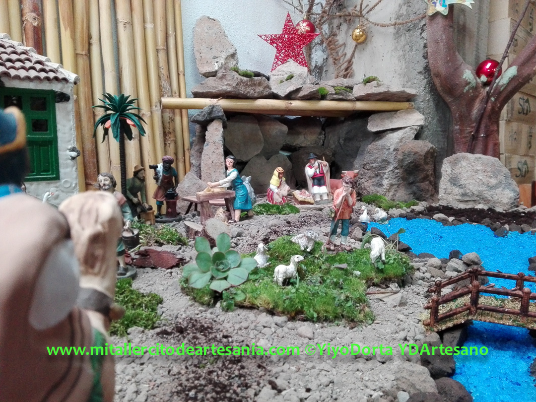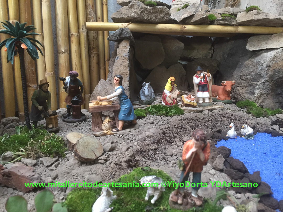 Este Belén nació sólo como compañía de mis infinitas horas en el «búnker», con frío y humedad, pero con el calor de la ilusión y el arte y vuestro apoyo. Y hoy recibí una visita inesperada en el taller, y surgió entonces la idea de compartirlo en la web y redes sociales.