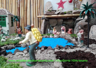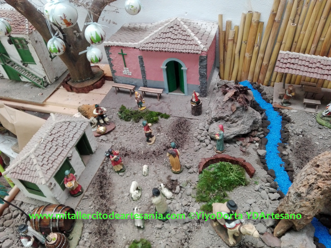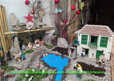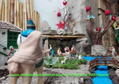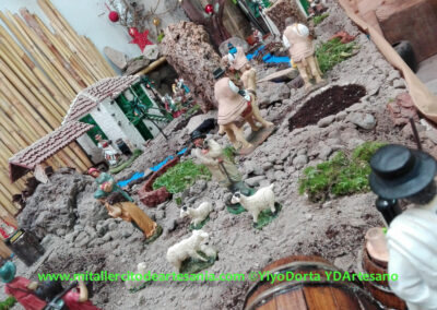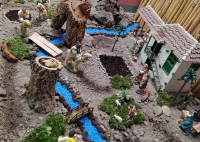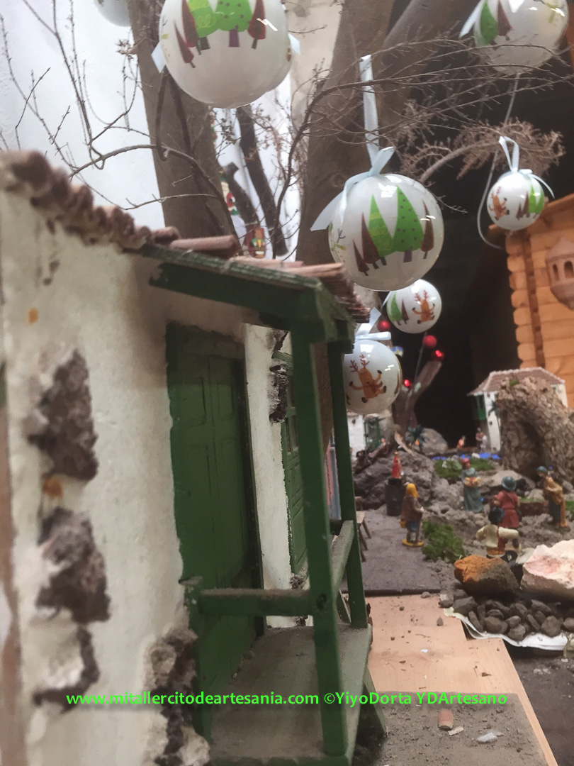 No es un Belén de concurso, ni mucho menos; es algo más sencillo. Fue la idea de juntar todas esas piezas, maquetas, y detalles, algunos tienen más de 40 años, pero que conservo en mi taller, y que han creado este pequeño intento de Belén. No hay ninguna pieza nueva ni creada este año para el Belén, todo es material viejo y reciclado.