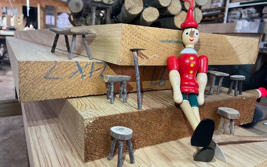 Ya están las 4 patas de esta banqueta. Y digo banqueta por dos motivos: el primero es porque 4 sujetan mejor que tres y que dos, y porque la banqueta incluso ya tiene forma para ser acompañada en el futuro por otras que pueden acabar sentadas en la misma mesa.